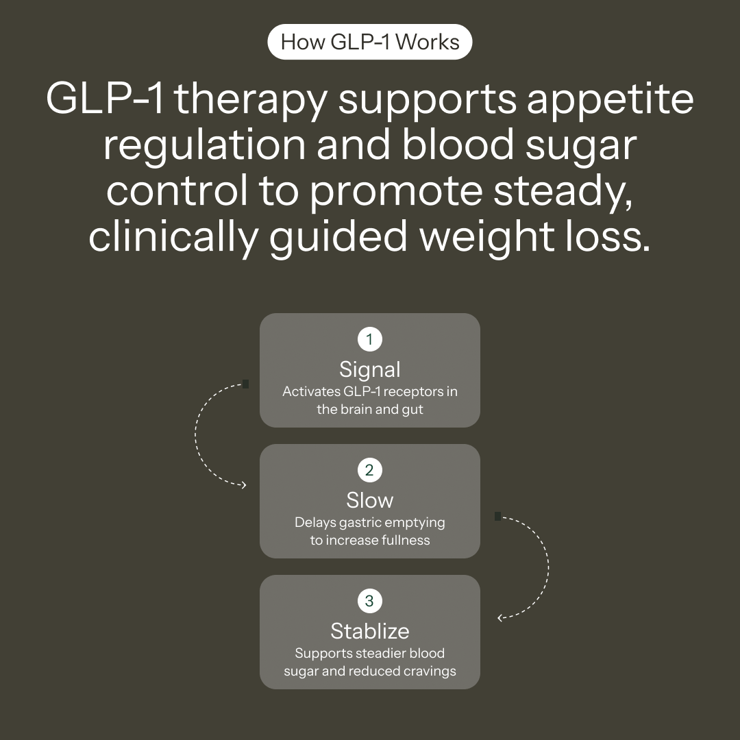 GLP-1 (Glucagon-Like Peptide-1) medications are FDA-approved treatments that mimic a natural hormone in your body that regulates appetite and digestion. They work by helping you feel fuller longer, reducing hunger signals, and slowing down digestion. This leads to reduced calorie intake and sustainable weight loss when combined with lifestyle changes.